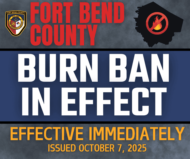 FORT BEND COUNTY, TX – During its regular session on Tuesday, October 7, 2025, the Fort Bend County Commissioners Court approved an outdoor burn ban for all unincorporated areas of the county.